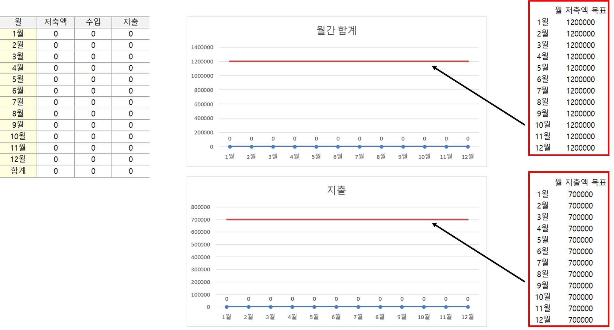 월 저축액 목표와 월 지출액 목표 그래프의 빨간선 수정을 쉽게 하기 위해